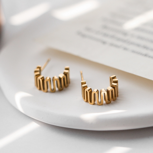 Gold Sculptural Crescent Pendant Pearl Necklace