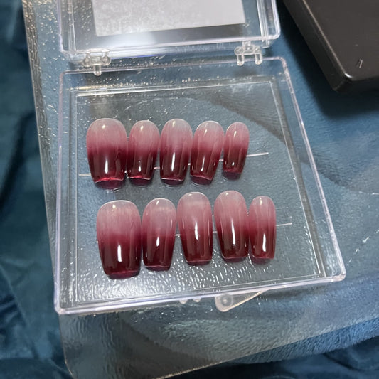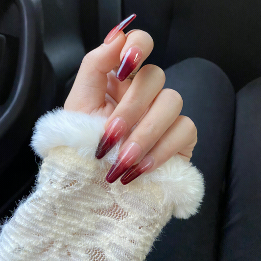 Gradient Red Long Coffin Press on Nails