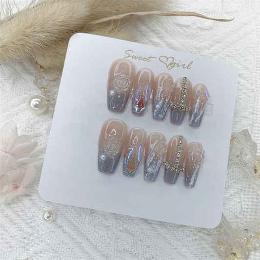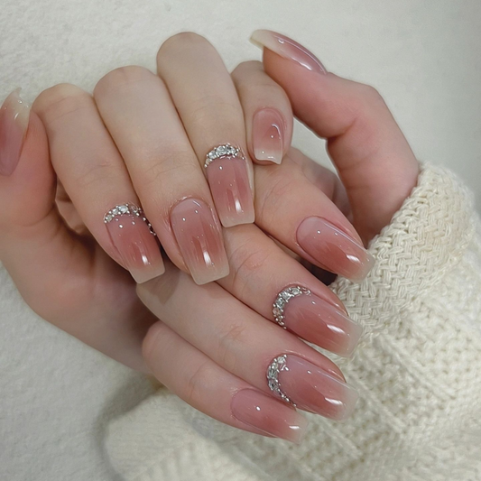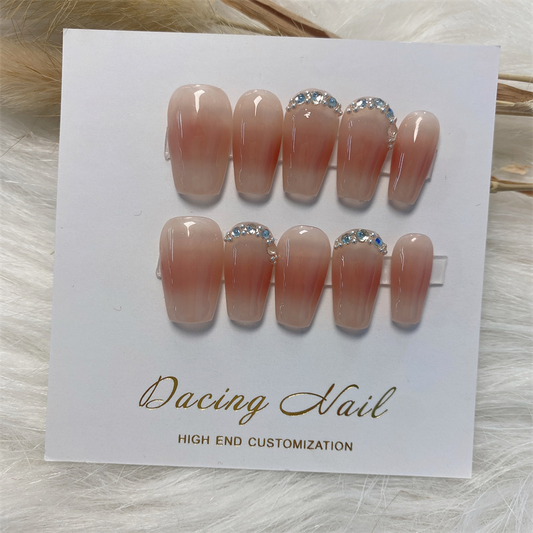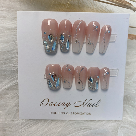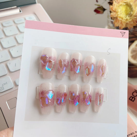 Colored Large Crystal Nude Press on Nails