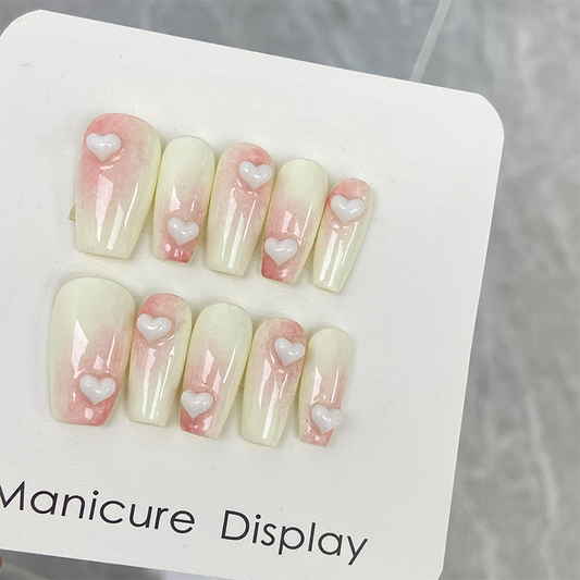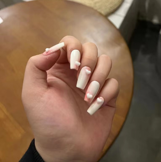 Ivory Pink Blend Press on Nails with 3D Hearts