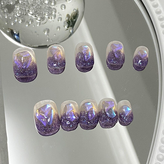 Glittering Purple Short Round Press on Nails