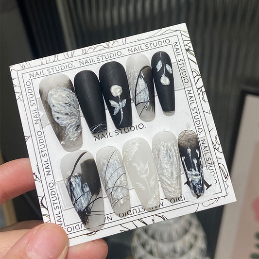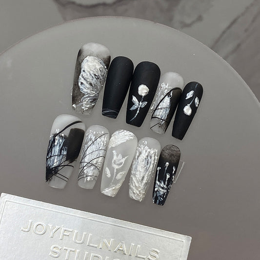 Gothic Black Rose Press On Nails