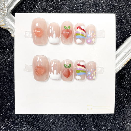 Peach Rainbow Pink Press on Nails