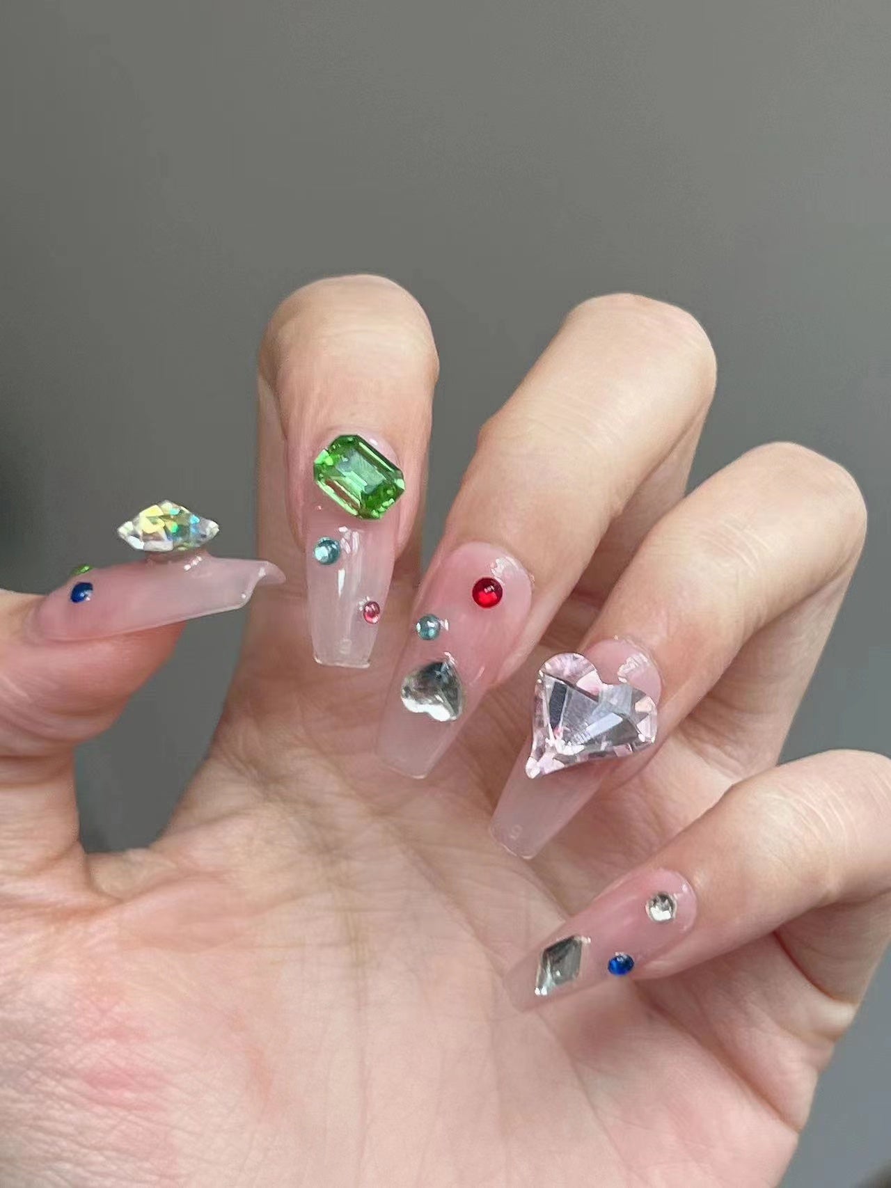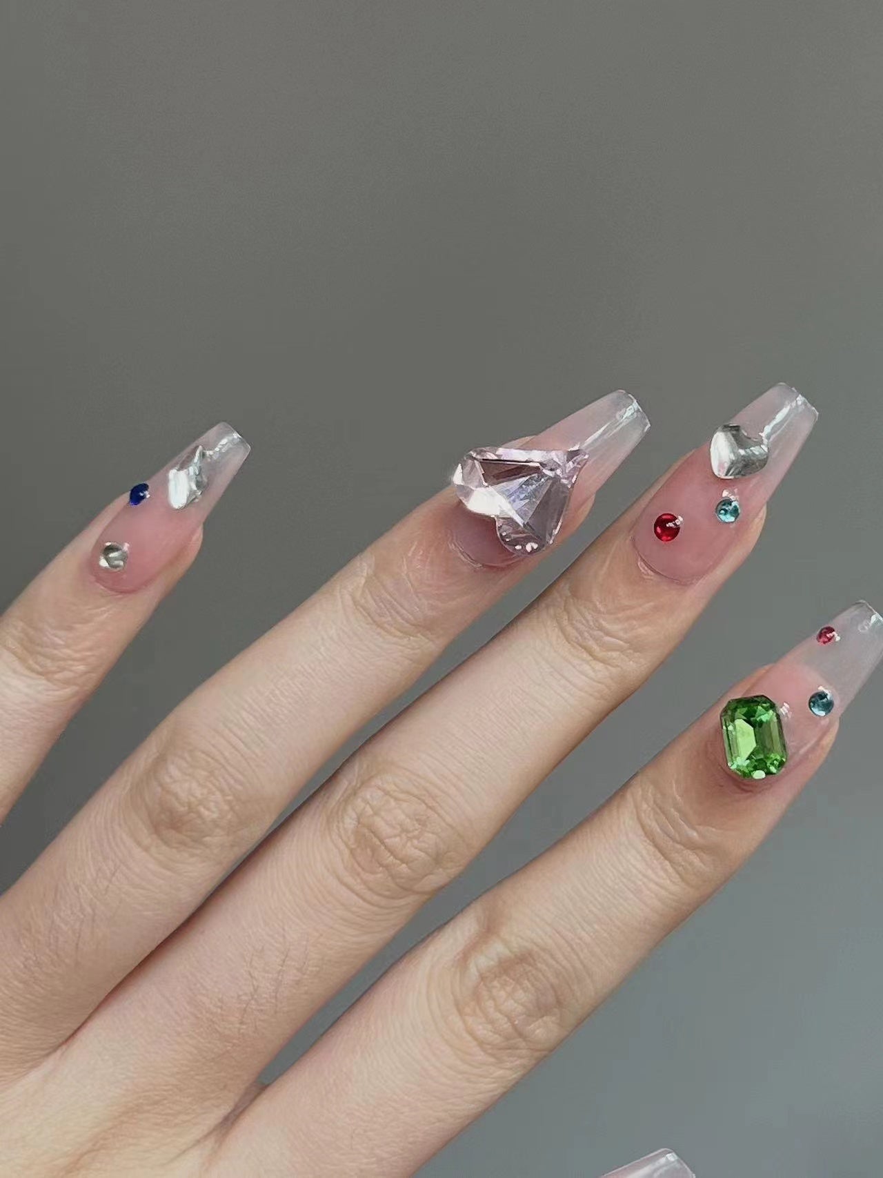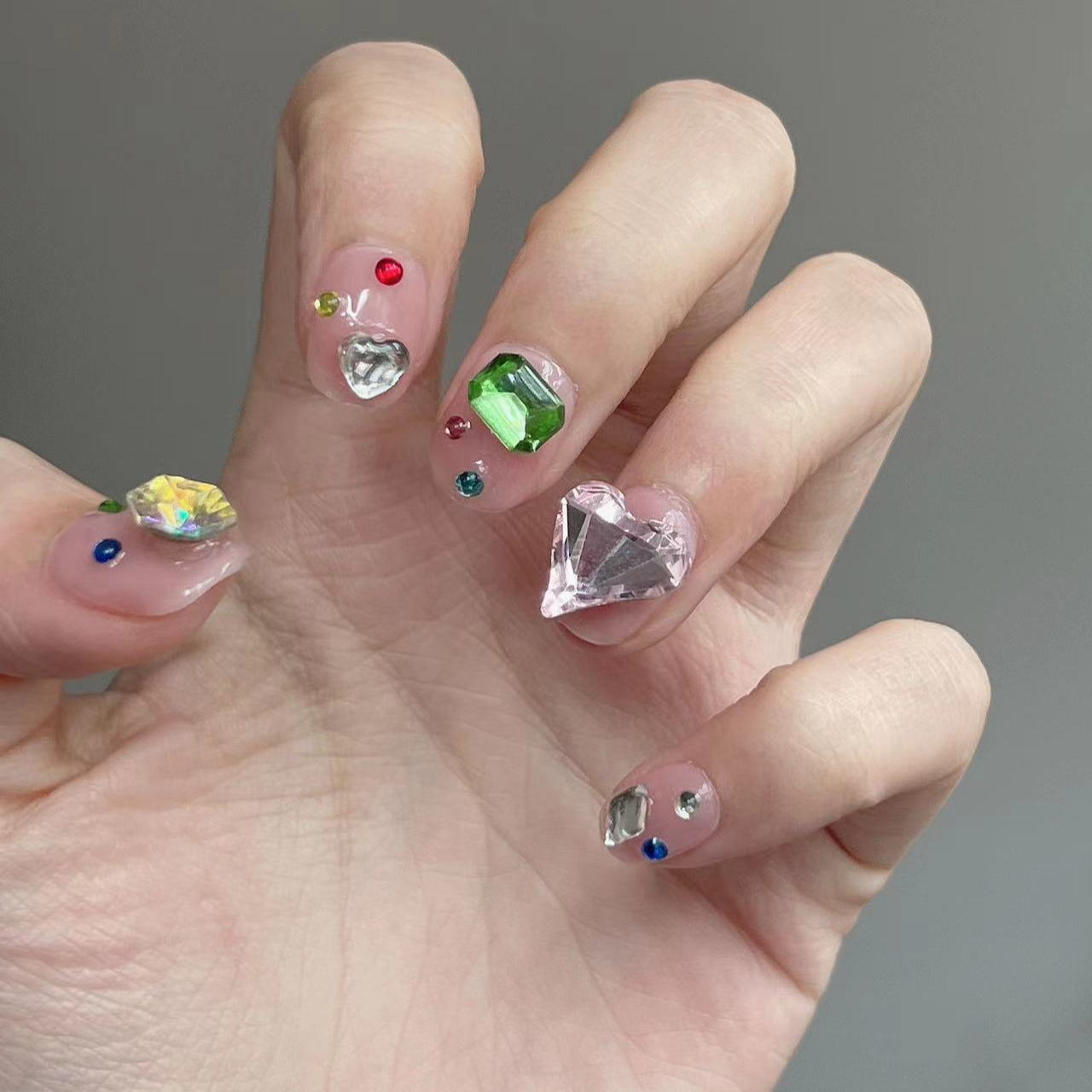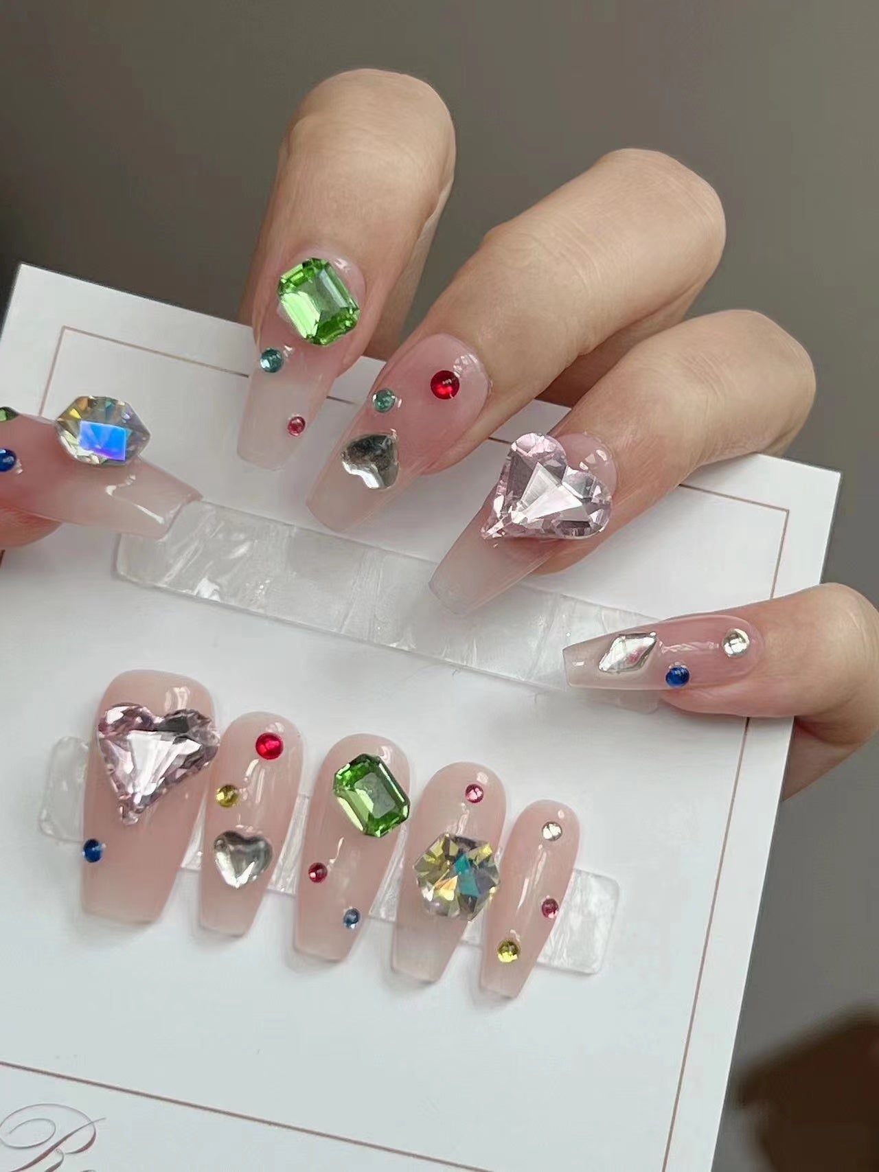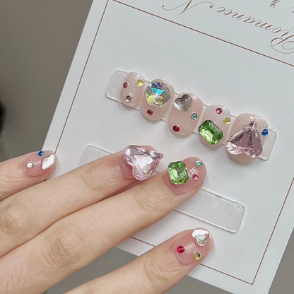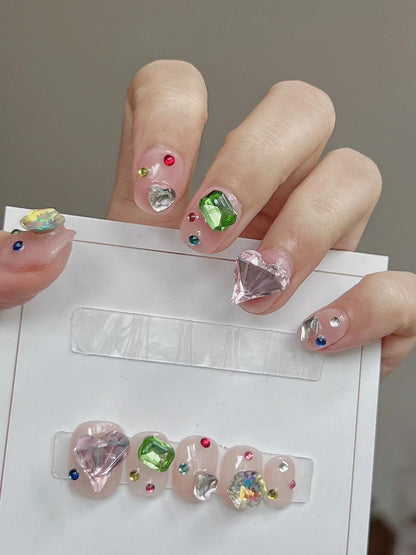 Colored Large Crystal Nude Press on Nails