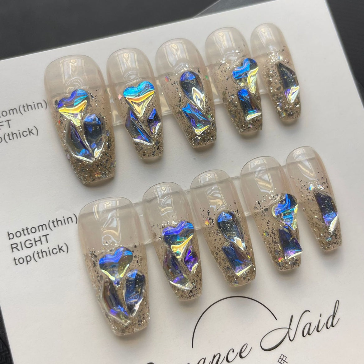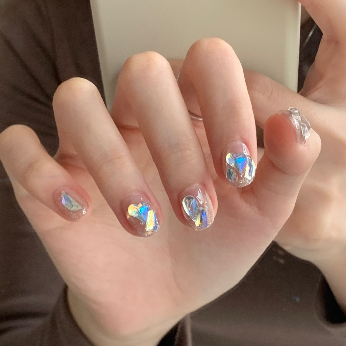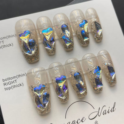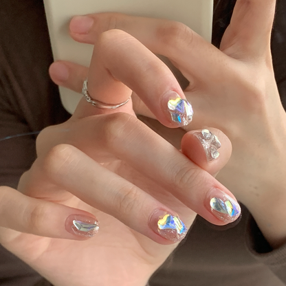 Make a statement with our stunning crystals press-on nail set, featuring a clear base with glittering sequins and large crystals that will make your nails shine like never before.