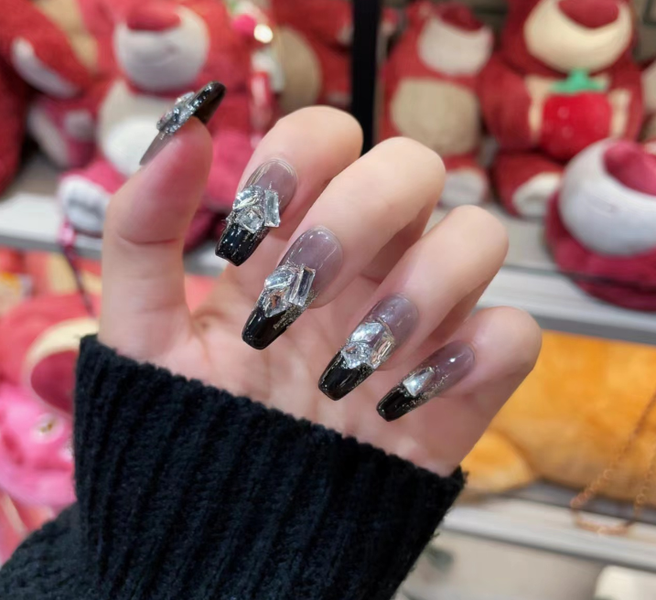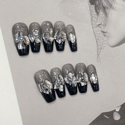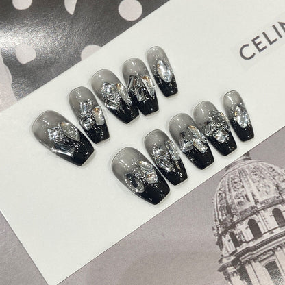 Gothic Black Swarovski Press On Nails