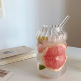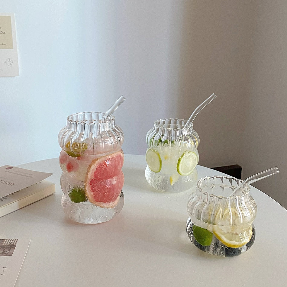 Large Aesthetic Juice Water Glass Cup with Straw