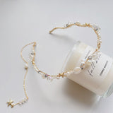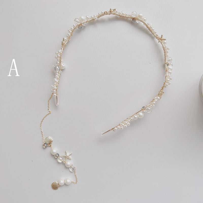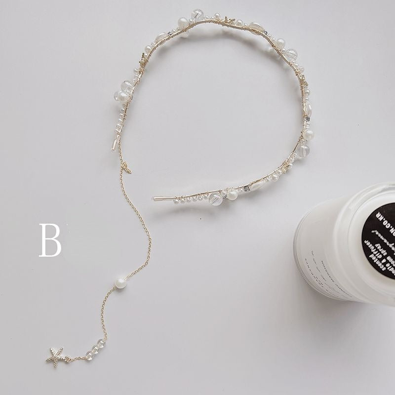 Pearl Crystal Beaded Wave Headband with Long Tassel